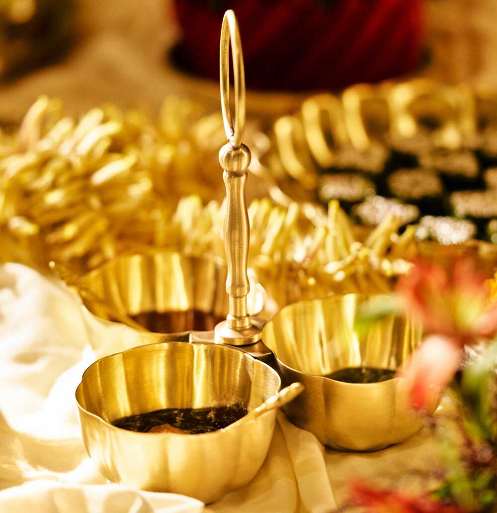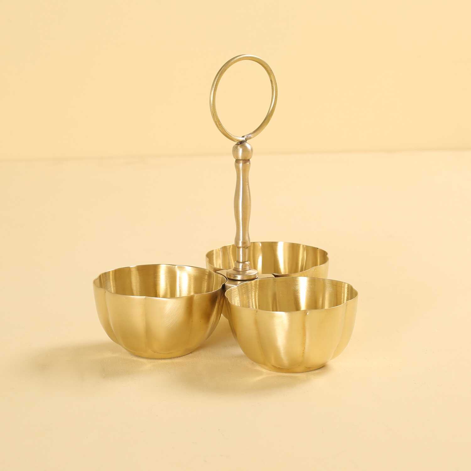 A 3 bowl piece is a very handy & versatile serve bowl. You can serve nuts, olives on your grazing table. You can use it for serving chutneys when serving any indian cuisine.