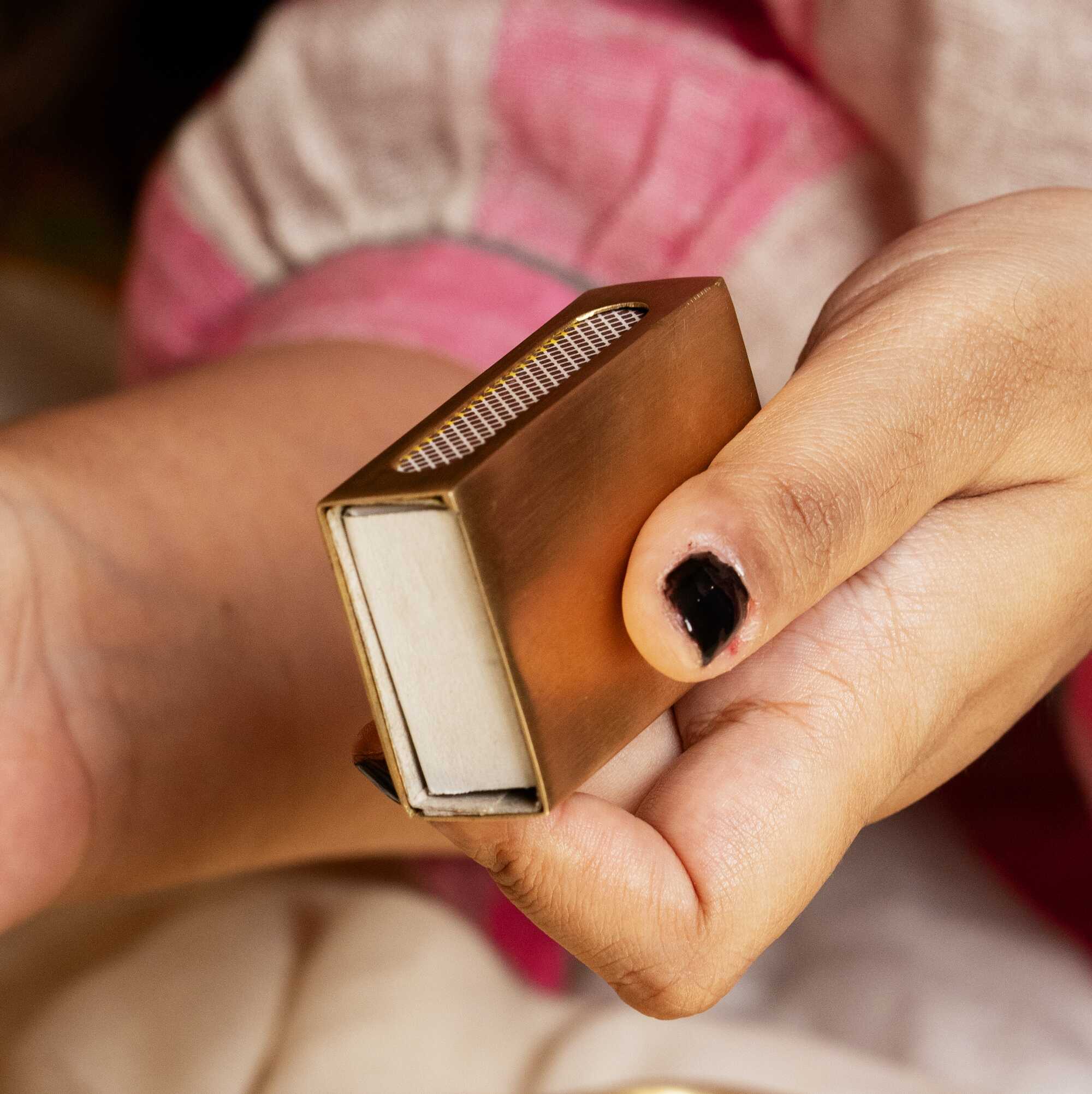 A really chic way to store your matches is finally here. Our brass matchbox is a must for every home. Comes with a box of Homelite matches.