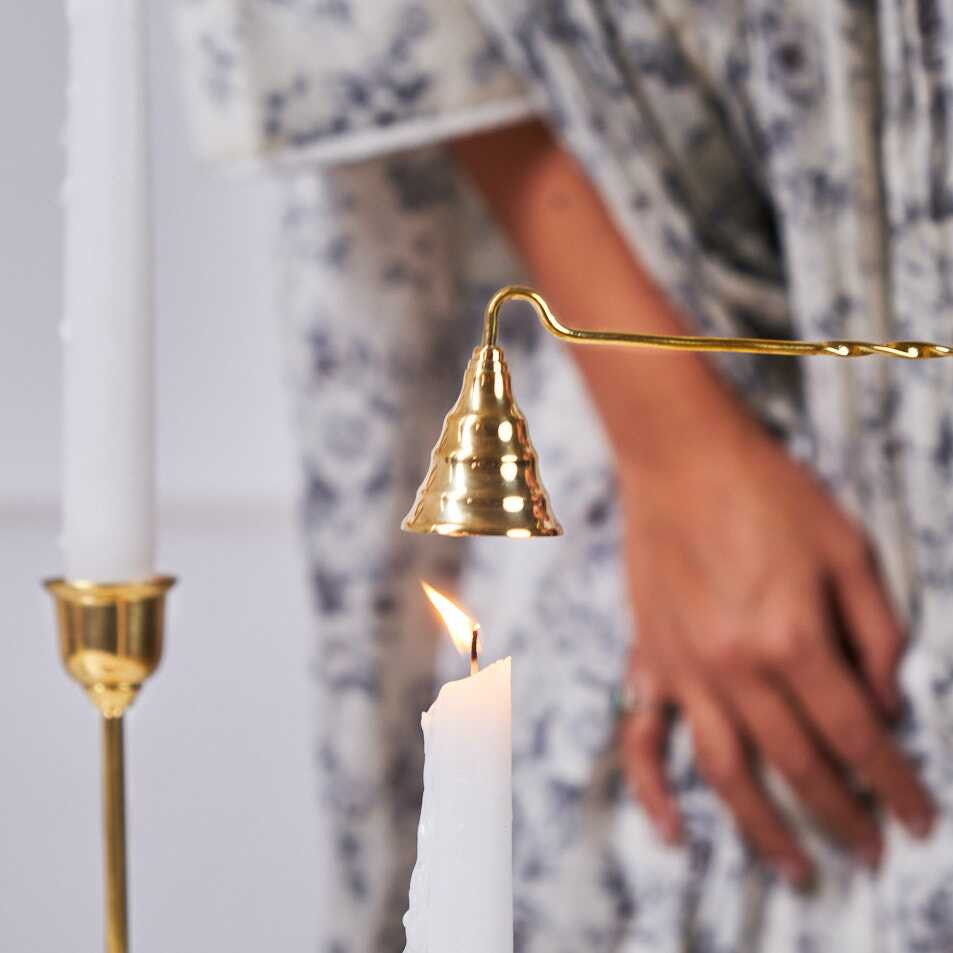 Use this brass candle snuffer to put out the candle flames.