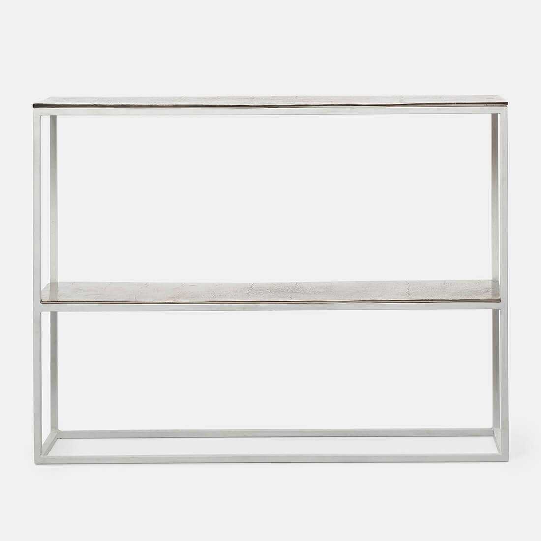 Our jumbo console is a great addition to your living room. It’s sleek design will perfectly blend in with your decor aesthetics. A double shelf console can hold many of your collected decor pieces and gives you plenty space to play around.