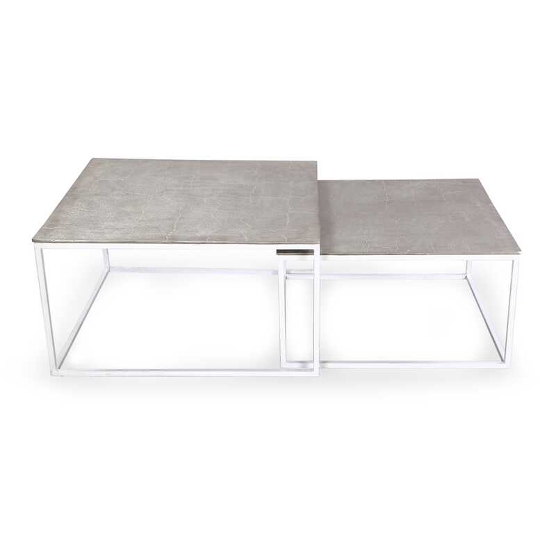A set of sleek modern coffee table for a clean and minimalistic living room look. The Aluminium top is finished with a raw and rough surface, showcasing the metal’s natural pattern via the sand casting process of handcrafting.