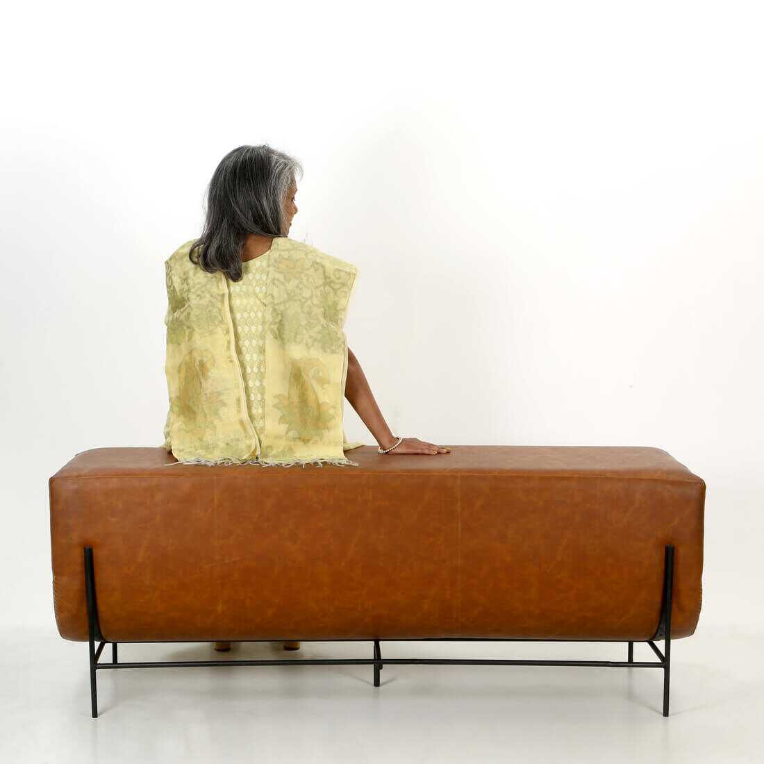 A full size bench in beautiful tan leather.