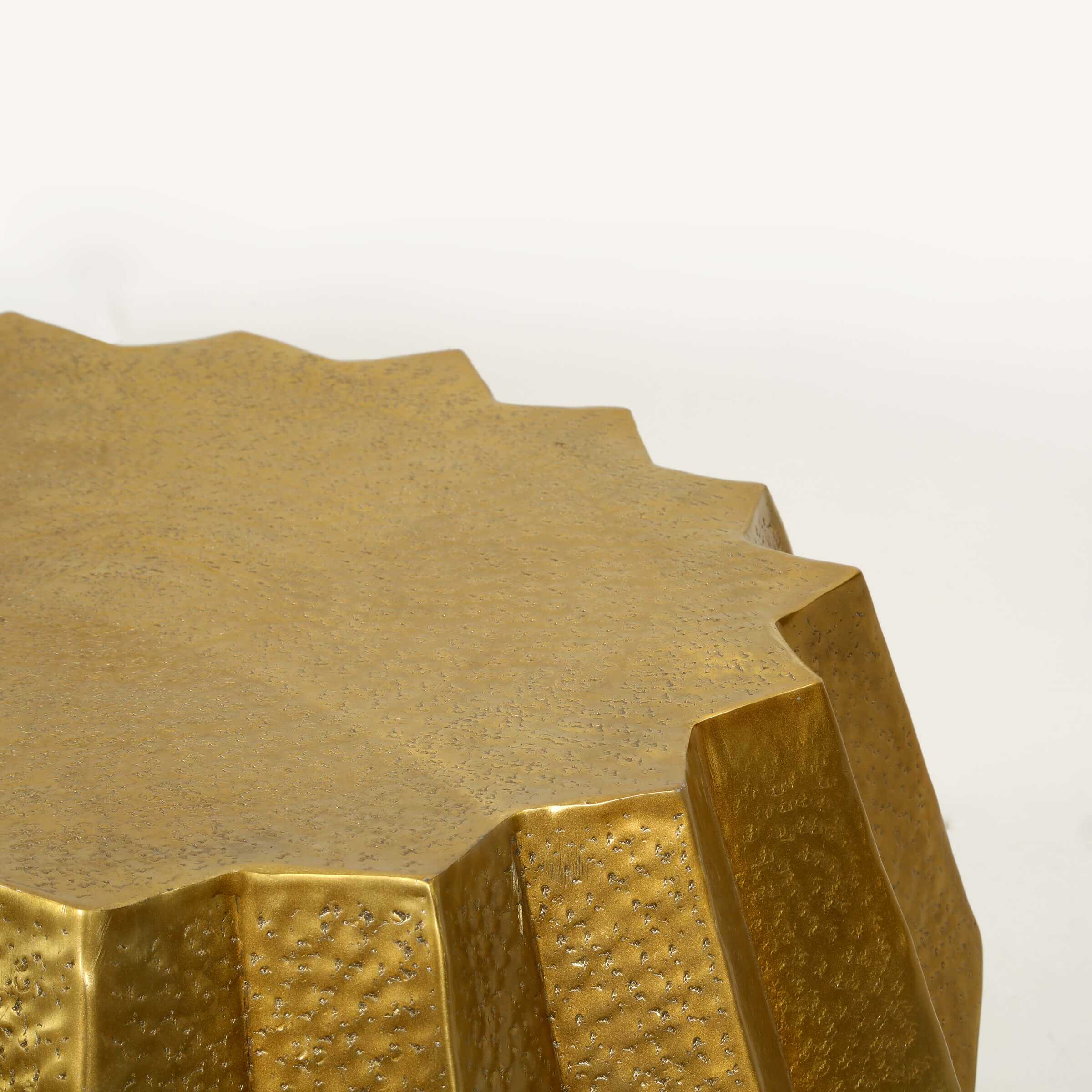 Made of Aluminium sheet, continuously hand beaten to get that beautiful pattern, plated in brass & sealed in with a lacquer. This is indian crafts re defined.