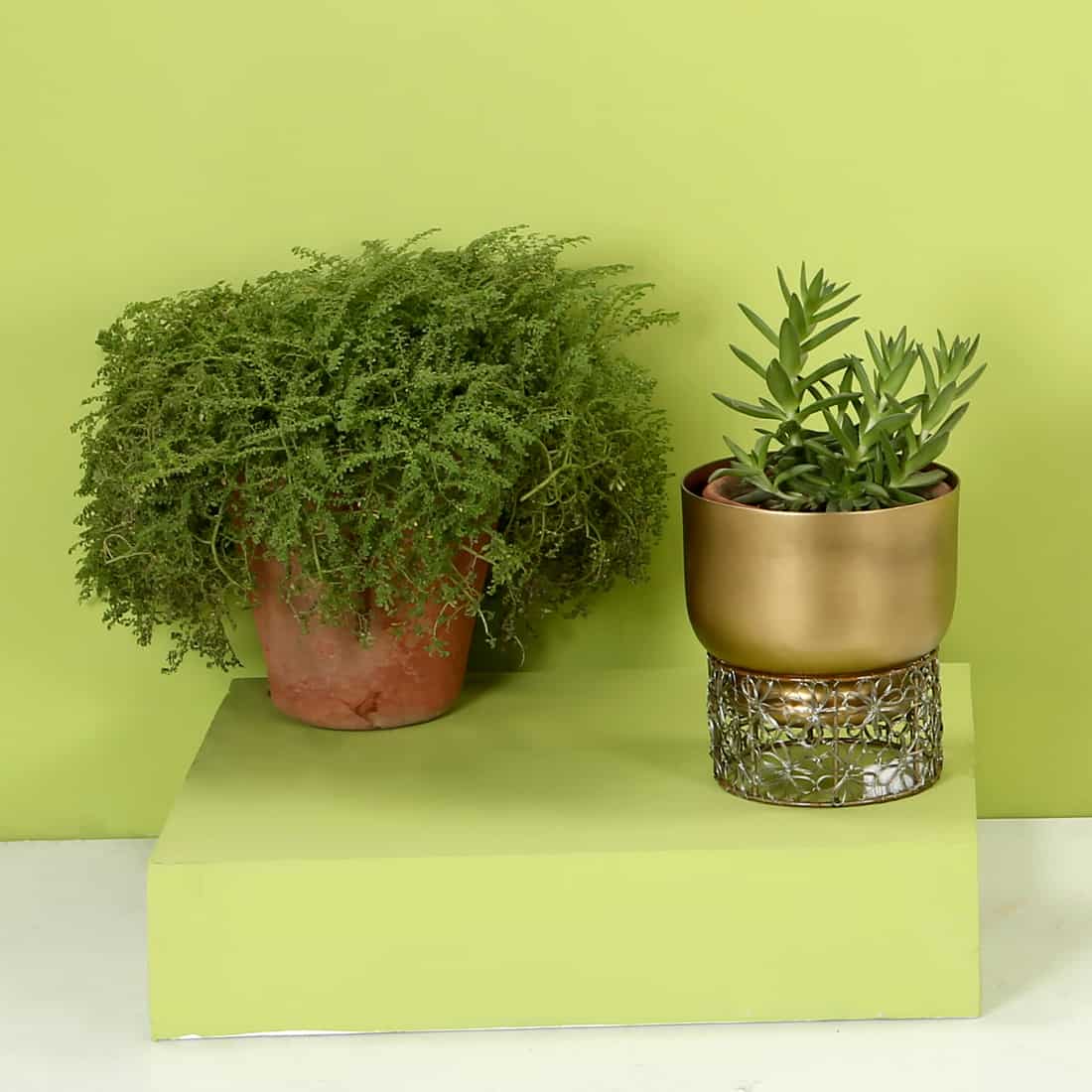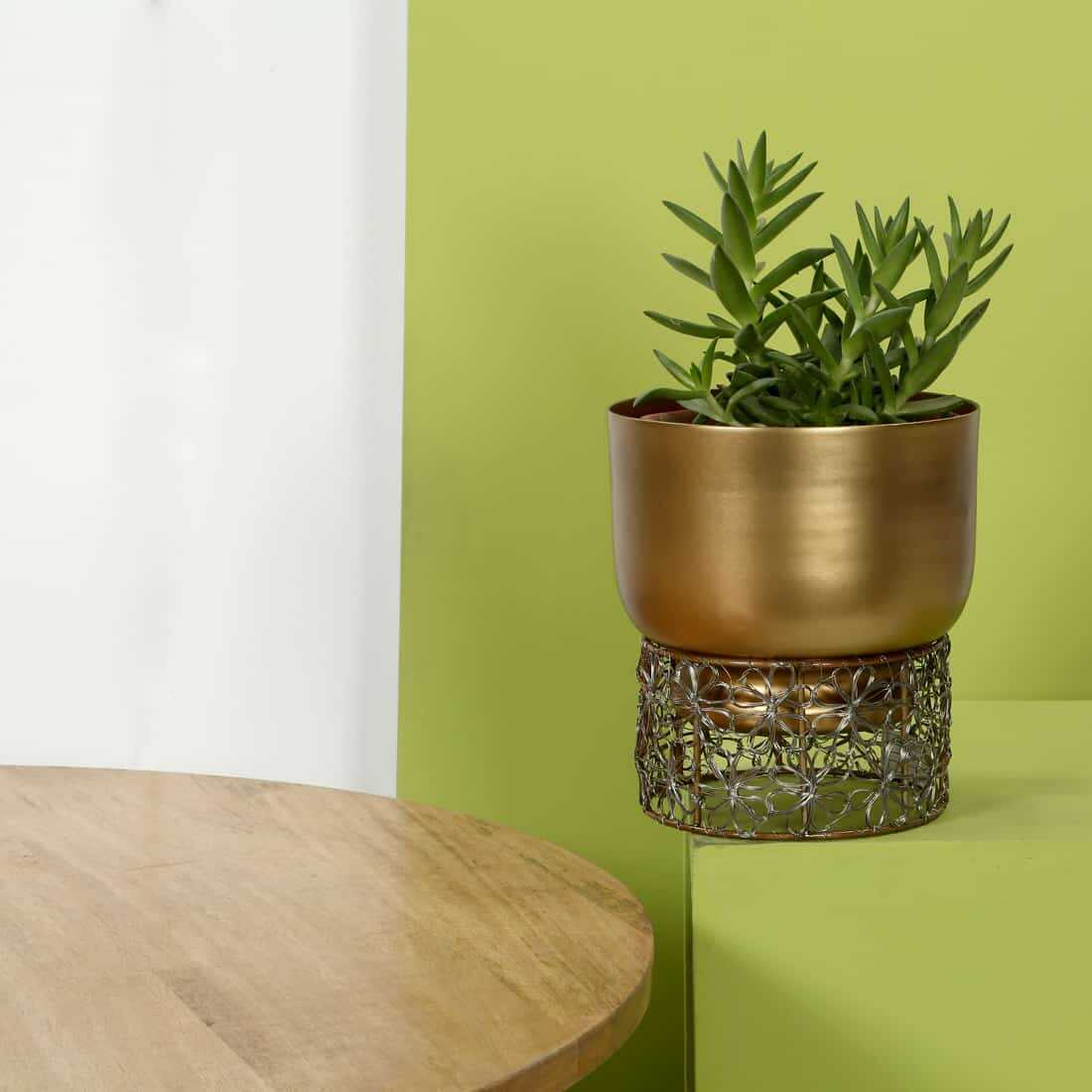 Show of your precious plant babies in our gorgeous metal planter. The base is beautifully handwoven and the chic top planter compliments it beautifully.