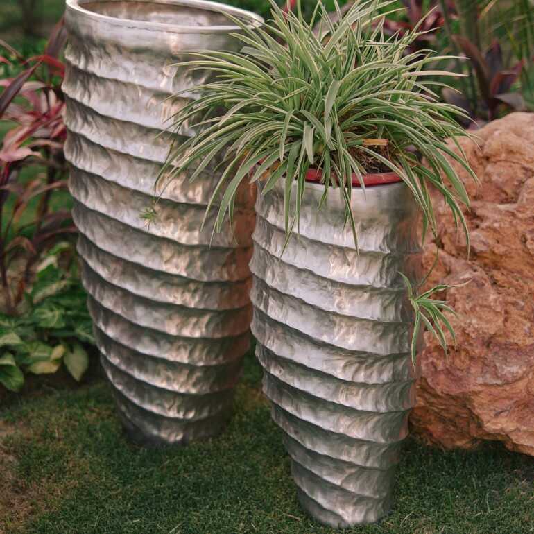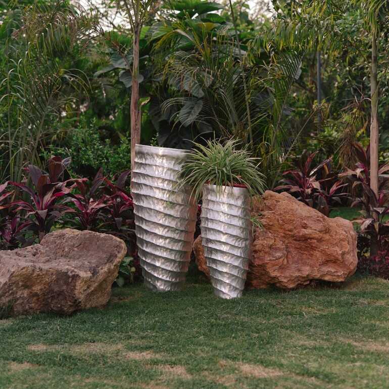 Inspired by mountain ridges, this planter is a sculptural beauty. It’s handcrafted using metal sheets, the texture is achieved using a wooden hammer.