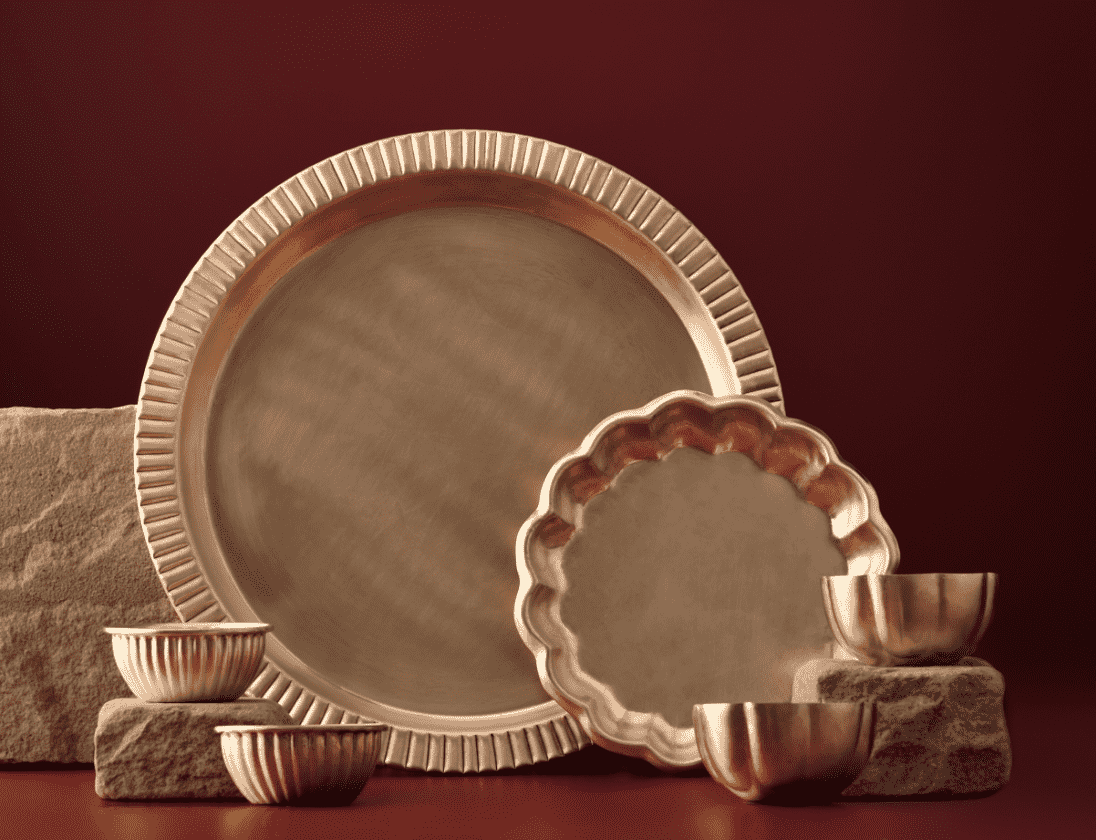 Inspired by the Indian Rose, these rose scalloped thaalis are beautiful additions to your dinnerware. You can use the small plates as appetiser plates or as quarter plates. The Bigger size is ideal for serving kebabs, appetisers, paan, mithai etc.