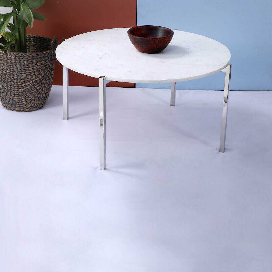 A marble and stainless steel coffee table which the minimalist in you will love.