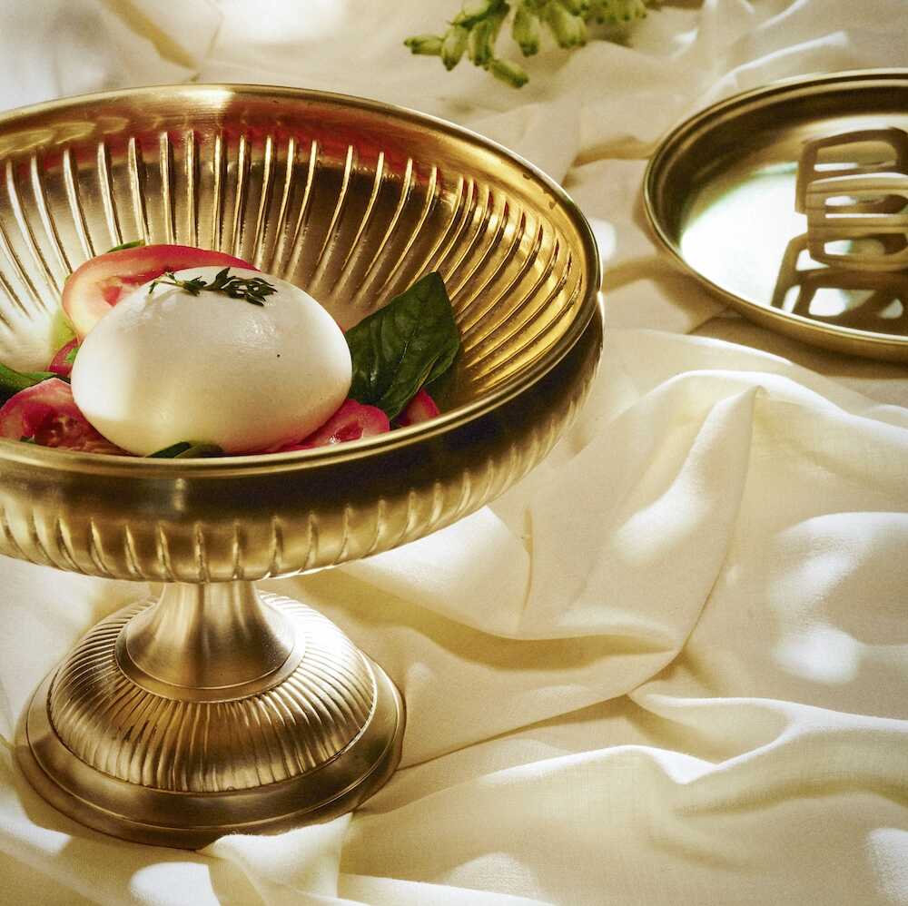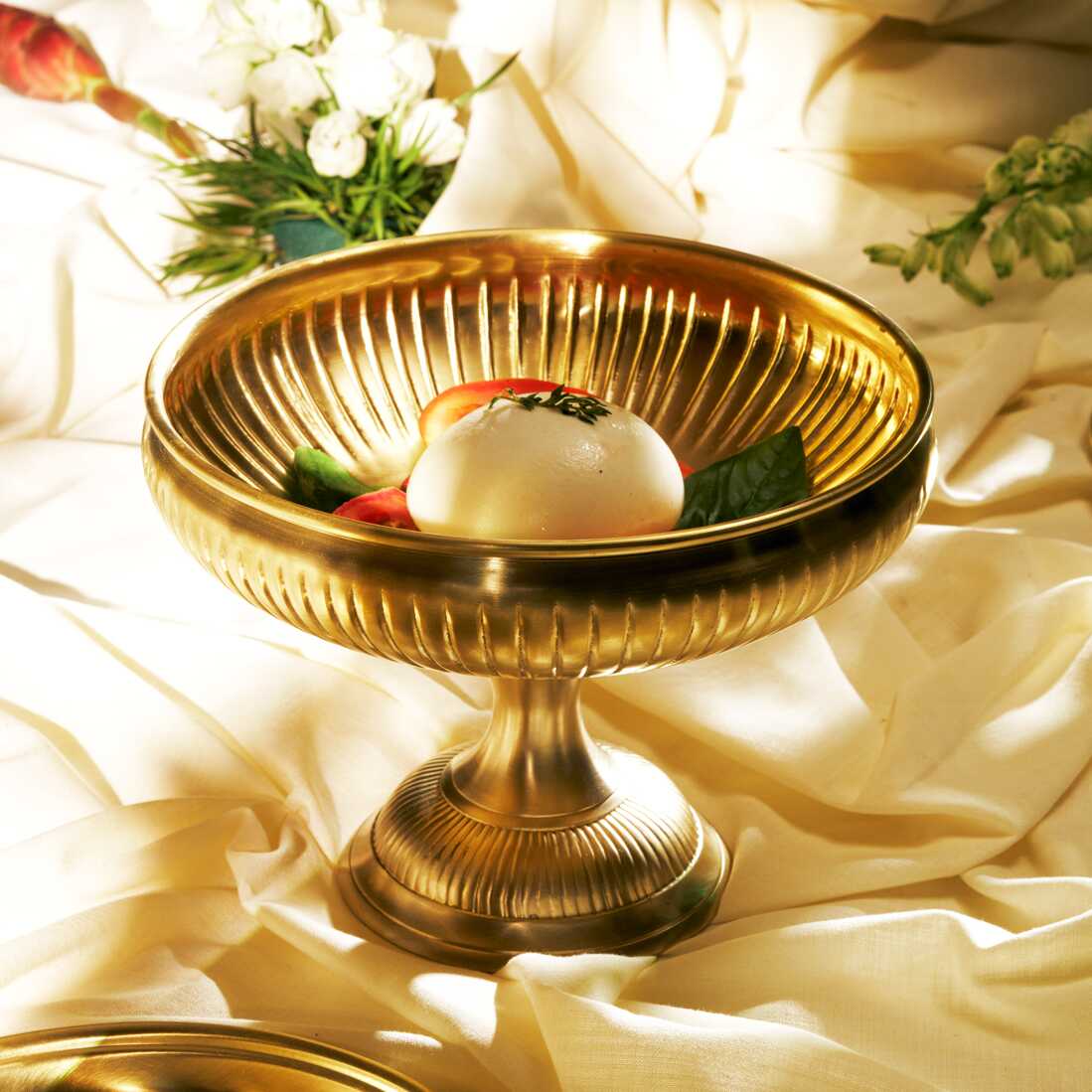 Our Heirloom brass pedestal bowl is designed to add opulence to your Dining table. You can use it for fruits, serving desserts, on your grazing tables or for dressing your tables with flowers.